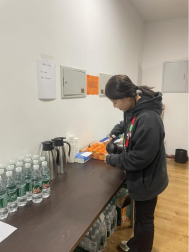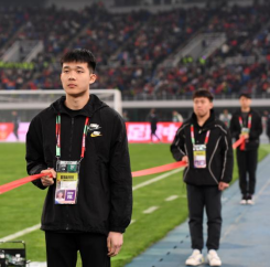 体职院的30名志愿者按照岗位分成两组,一组在赛场内拉隔离带、维护赛场采访秩序,一组在新闻发布厅、媒体看台区、混合采访区、餐饮区负责首发名单的接收与传递、储物柜管理、设备检查、秩序引导、收发物资、机动协调等工作。