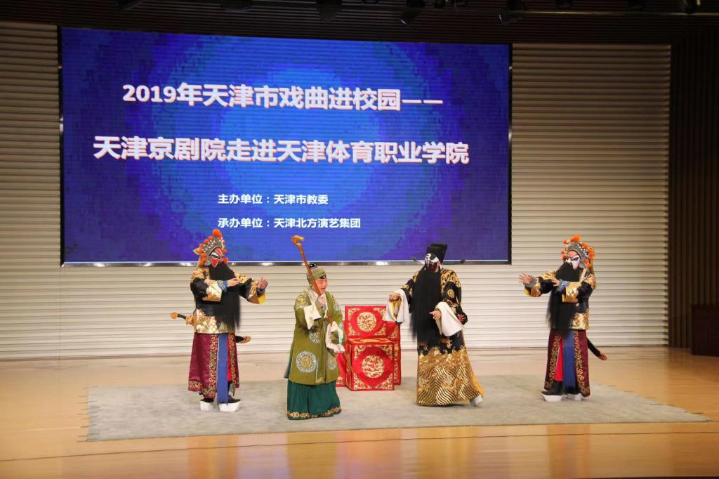 2019年12月23日下午,beat365在线唯一官网开展“2019年天津市戏曲进校园——天津京剧院走进beat365在线唯一官网”活动,此次活动由天津市教委主办,天津北方演艺集团承办。市教委体美劳处副处长刘恒岳,beat365在线唯一官网党委书记王伟,院党委副书记、院长刘钦龙出席此次活动。