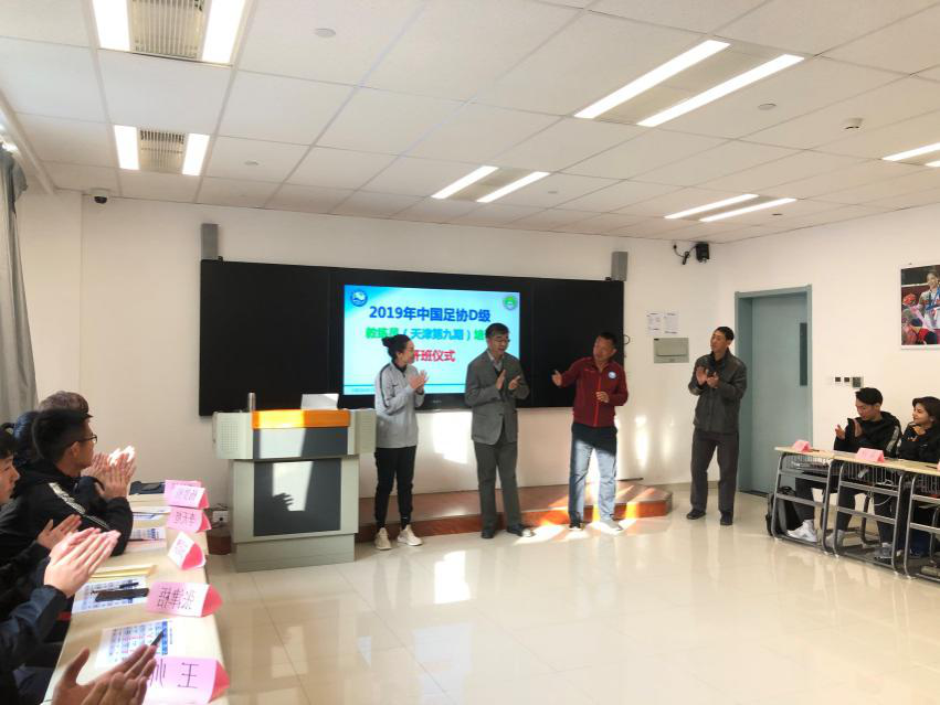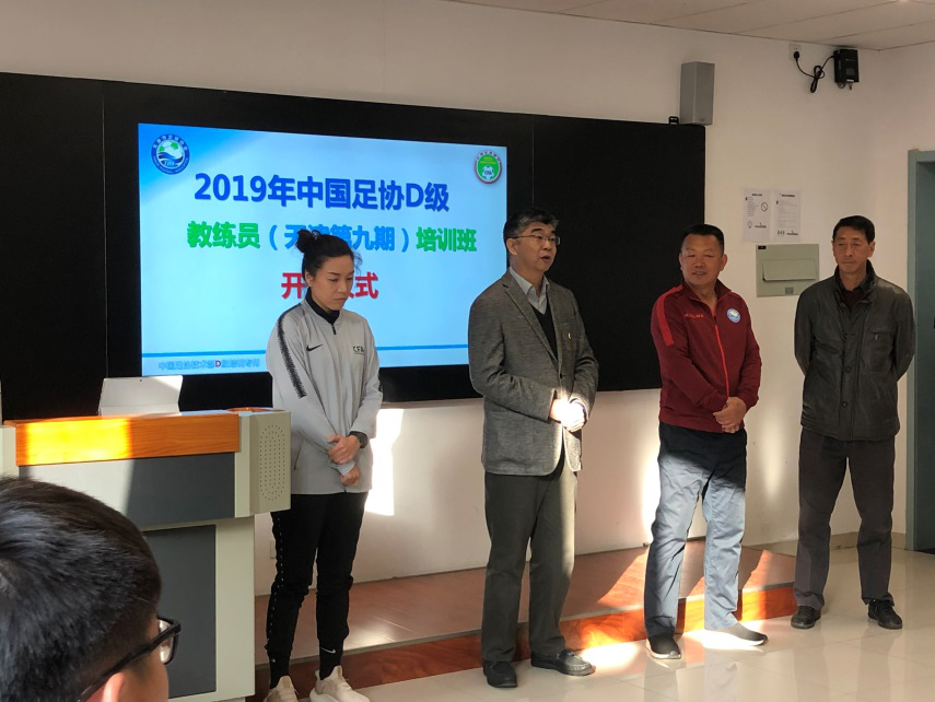 在市体育局领导、院领导和天津足协的助力下,11月20日上午,天津足协与beat365在线唯一官网共同合作的首期“中国足协D级教练员培训班”在我院开班,院党委书记王伟、天津市足球协会副主席兼秘书长崇勇、院足球方向带头人施连志与天津足协D级讲师刘晨出席,中国足协委派D级教练员讲师王婷婷进行授课,我院足球方向全体学生参训,并将参与此次中国足协D级教练班为期七天的集中学习。本期培训班也是天津足协本年度举办的第九期教练员培训班,通过讲师的专业指导,将进一步完善学生足球理论知识和实践能力,通过结合足球从业的实际经验,为学生们今后的执教打下坚实的基础。