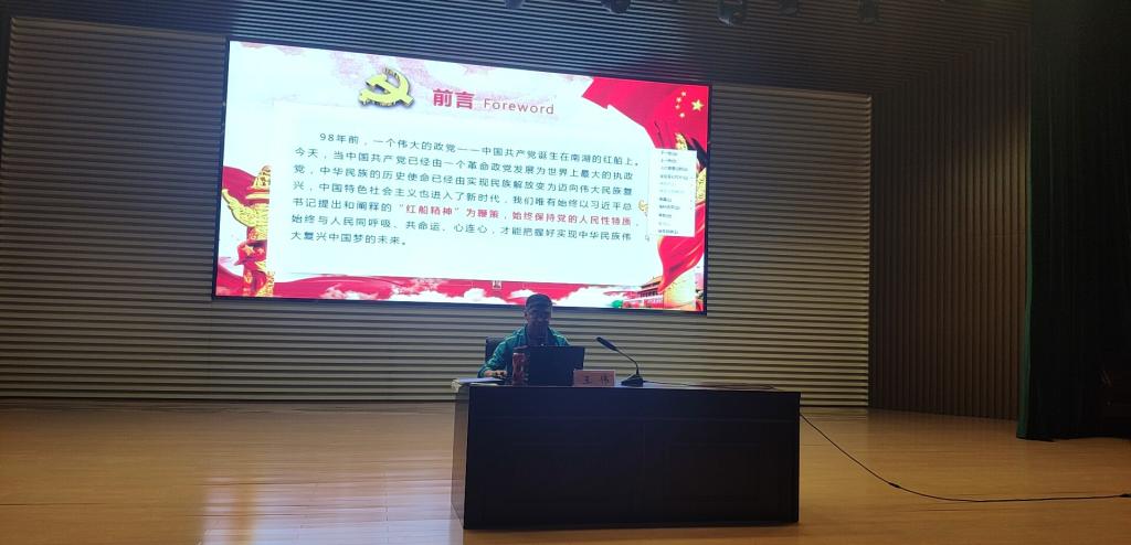 最后,王伟用“红船劈波行,精神聚人心”表达无论过去还是未来“红船精神”都是实现中华民族伟大复兴中国梦的强大动力。他鼓舞学生,特别是学生入党申请人,要继承红色基因,以永不懈怠的精神状态和一往无前的奋斗姿态,为实现中华民族伟大复兴的中国梦,砥砺前行!