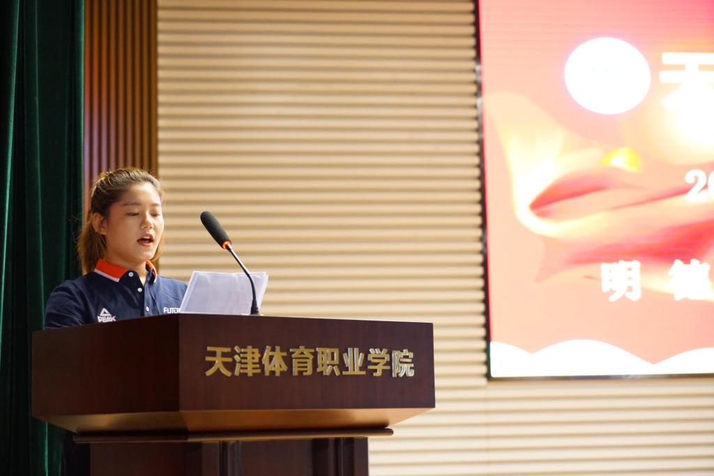 一系列精彩的专项体育表演拉开了典礼的序幕,随后2017级学生代表和2018级新生代表及辅导员代表、教师代表相继上台发言。