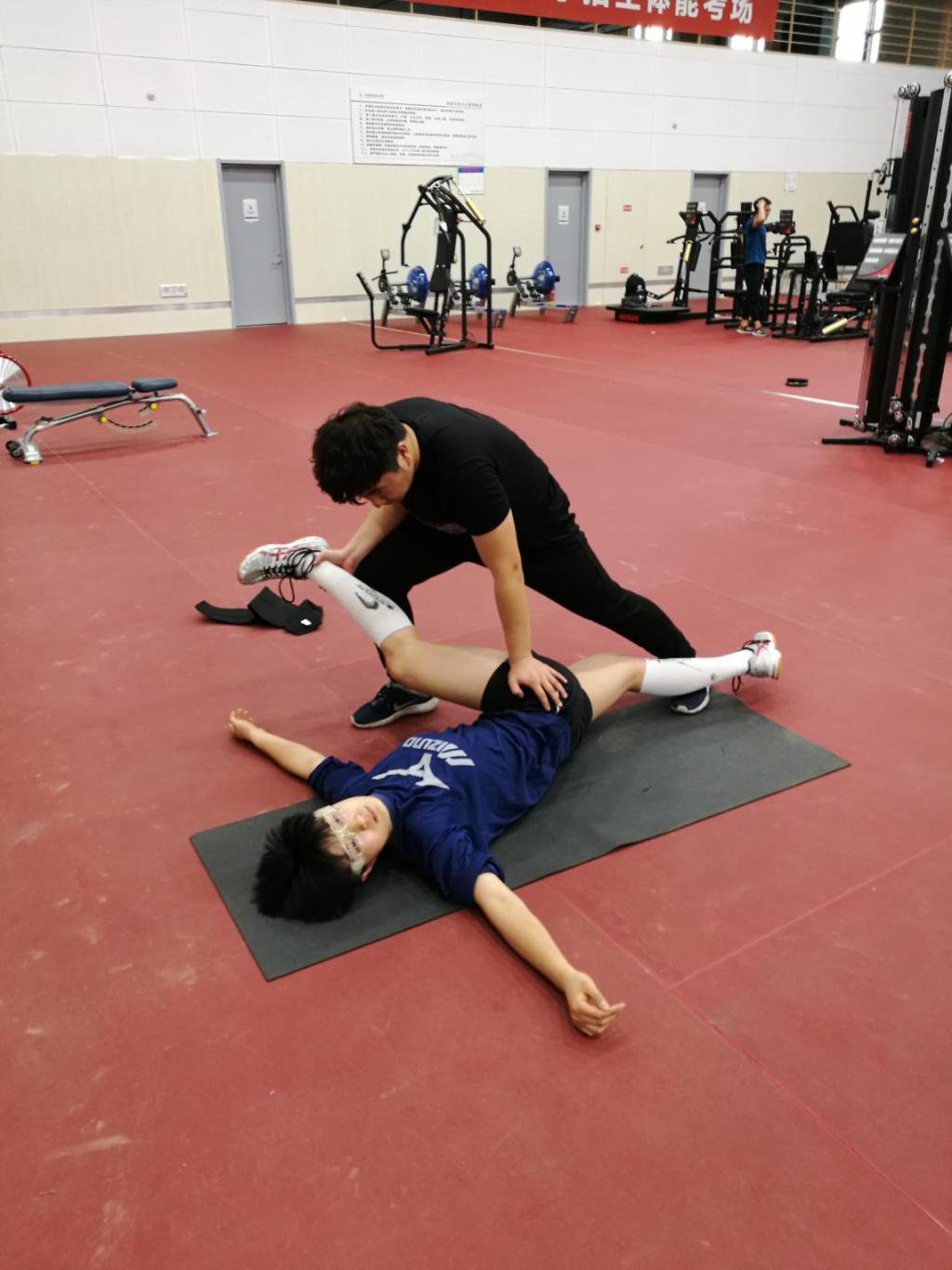 为贯彻落实天津市体育局党委《进一步学习天津女排精神活动的通知》要求,以及市教育两委的指示精神,加强学生们的思想政治教育和职业道德教育工作,体育保健与康复系的辅导员王虎与学生刘子宁、卫梦晨、王泽路师生四人每天下午参与并协助青年女排在体能中心的体能训练课及训练后的恢复。