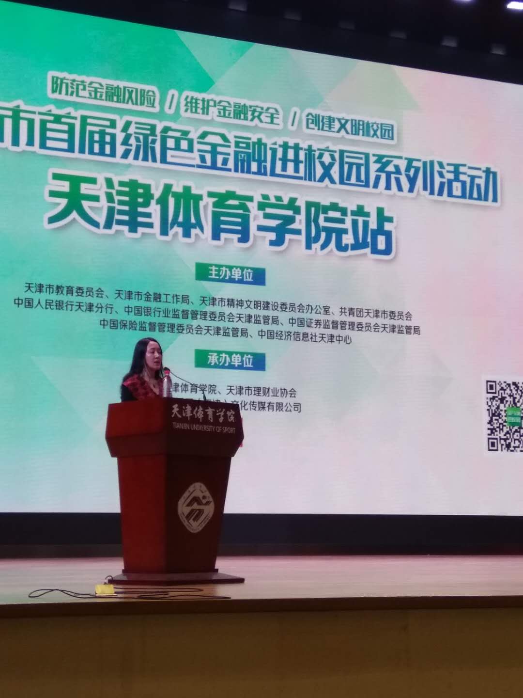 2018年5月11日,根据市教委《关于做好“金融知识进校园公开课”组织工作的通知》要求,我院体育运营与管理系全体学生在学生处副处长赵雪的带领下参加由天津市教委、市金融局、市文明办、团市委、中国人民银行天津分行、天津银监局、天津证监局、天津保监局、新华社中国经济信息社天津中心共同举办“防范金融风险 维护金融安全 创建文明校园——天津市首届绿色金融进校园系列活动金融知识进校园公开课天津体育学院站”的活动。