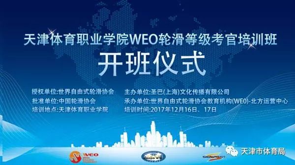 2017年12月16日—17日,为推动轮滑运动健康、规范、科学、有序发展,培养轮滑项目技术技能型人才,扩宽学生就业渠道,由世界自由式轮滑协会授权,中国轮滑协会批准,圣巴(上海)文化传播有限公司主办,WEO北方运营中心——行健极远(天津)文化传播有限公司承办的首届高校WEO自由式轮滑等级考官培训班在beat365在线唯一官网举行。