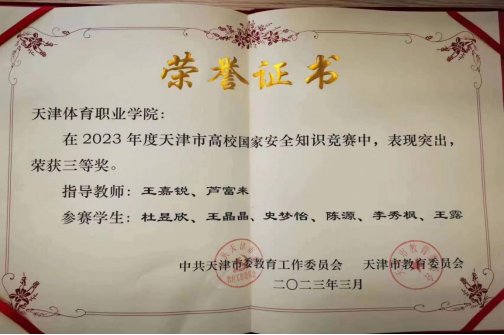 本届高校国家安全知识竞赛由中共天津市委教育工作委员会、天津市教育委员会主办。我院在接到本次比赛的通知后,由学生处积极组织,以深入学习贯彻习近平总书记关于加强国家安全教育的重要指示要求和本次比赛的相关文件要求,推进国家安全教育工作在高校广泛深入普及,引导学生提升国家安全意识,树立总体国家安全观,我院以本次国家安全知识竞赛选拔为契机,宣讲参加此次活动的重要性,让我院学生了解活动的意义,产生参加活动的自觉。通过前期宣传与选拔,最终6名学生作为本次比赛的正式队员,两名辅导员作为本次知识竞赛指导教师。通过让学生亲身参与,在理论识记中学习安全知识、增强国家安全意识和素养,检验同学们对于国家安全知识的掌握程度,包括基本概念、政策法规、网络安全、反恐维稳、涉外安全、战略布局等多个方面,以期增加参赛者对国家安全各领域的了解。