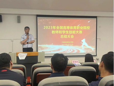 为深入学习贯彻党的二十大精神和习近平总书记在中共中央政治局第五次集体学习中就建设教育强国发表的重要讲话精神,全面总结我院师生在2023年全国体育高等职业院校教师和学生技能大赛中的优势和不足,5月31日下午在第二阶梯教室举行了2023年全国体育高等职业院校教师和学生技能大赛总结大会,会议由教务处副处长主持,院领导出席,全体教职工参加。
