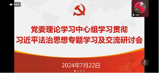 7月22日上午,体职院党委理论学习中心组以腾讯会议形式组织召开学习贯彻习近平法治思想专题学习交流研讨会,会议邀请市体育局相关处室负责同志列席,院领导班子成员参加学习,会议由党委书记杨军主持。