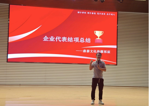 大会首先对2021级新媒体实践周项目做总结。历时22天,同学们共计制作IP切片2160条,从中选取了6个切片项目中表现优异的组别进行作品分享与实践感悟总结,同学们纷纷表示从中学习到了很多剪辑技巧与方法,并对于团队协作有了更深的体会与认知。合作企业天津鼎泰文化传媒有限公司祁辰总经理对同学们的实践成果进行了充分肯定,赞扬了同学们的学习实践精神,同时对IP切片项目与新媒体市场前景进行了分享,让同学们真切感知到此次实践的重要意义与作用。教师代表做实践周总结,回顾实践周全过程,从项目认知、剪辑技巧、协作配合等方面肯定了实践周给同学们带来的成长与改变。