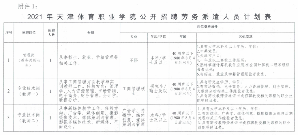 (三)岗位所需的其他条件详见《2021年beat365在线唯一官网公开招聘劳务派遣人员计划表》(附件1)